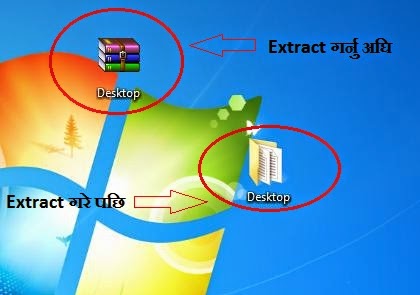 नोट:Extract to Desktop मा Desktop ले archive name लाई जनाउछ जुन step 3 मा देख्न सक्छौ