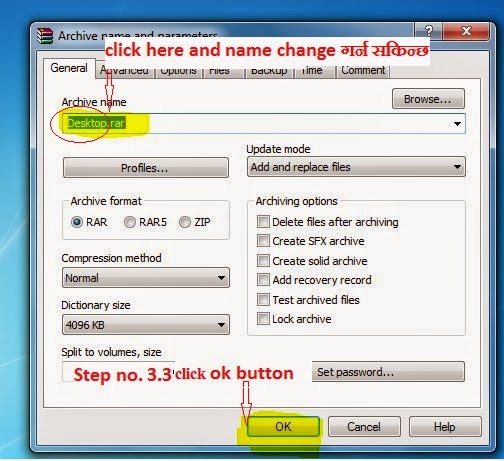 ३.अब दस्तावेजहरुलाई Archive गर्न को लागि पहिला दस्तावेज select गर्नुस र Add to Archive मा click गर्नुहोस र archive दस्तावेज को नाम परिवर्तन गर्न तल चित्र मा देखाए जस्तै नाम परिवर्तन गरि ok button click गर्नुहोस ,यो installation step 3.1, 3.2,3.3 मा देखाईएको छ .